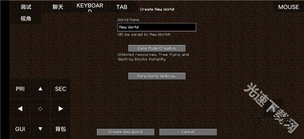 7、进入此界面后选择你的游戏模式以及名称并点击下方的“Create New World”;
