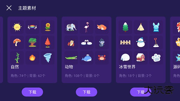 5、用户还可以点击【主题素材】将植物大战僵尸的特有素材进行添加,然后再依次添加特效、道具等属性即可完成植物大战僵尸的游戏开发