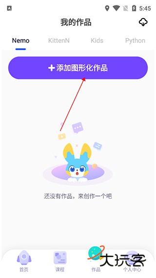 1、用户登录应用后可以前往作品模块下的Nemo页面下点击【添加图形化作品】按钮