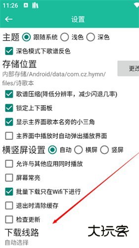 3、进入“设置”界面后,点击下方列表中的“下载线路”选项。