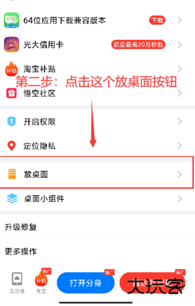 2、进入分身详情页,点击放置桌面按钮