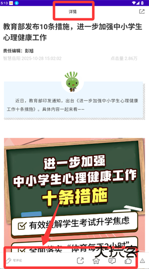 3、打开教育文章详情页,可阅读内容并进行评论或收藏等操作。