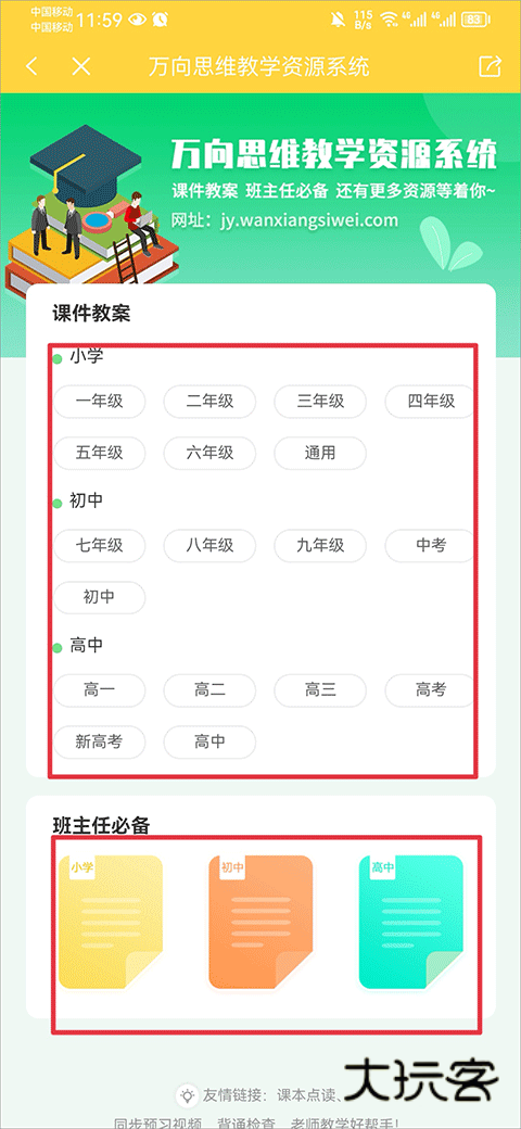 2、进入后选择任职的年级,若是班主任的话可以在班主任必备中选择所在的年级资料