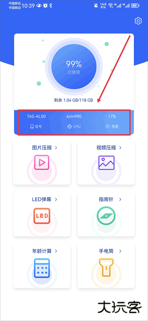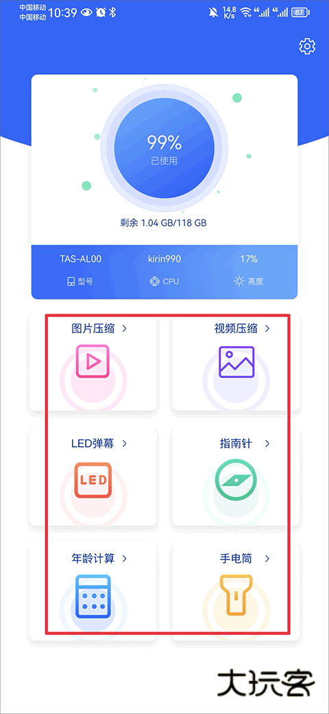 1、使用非常人性化的操作界面,相关用户可以在这里进行视频压缩、LED屏幕、指南针、年龄计算、手电筒等一系列操作,可以很好的为用户在工作和生活中带来极大的便利。