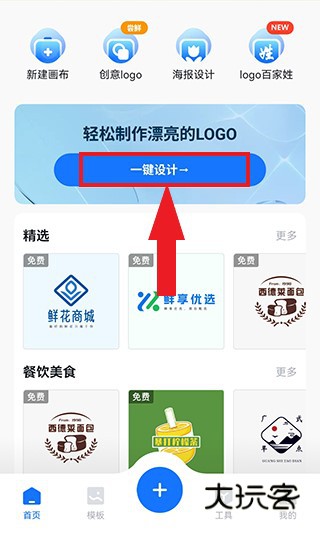 用户在本站下载并打开软件之后,可以进入到首页,点击“一键设计”。