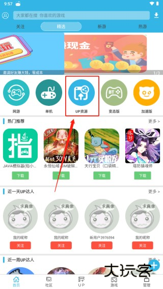 1、从51苹果助手下载打开软天空app,找到“up资源”