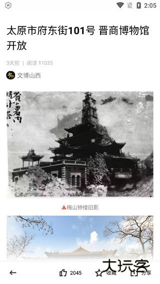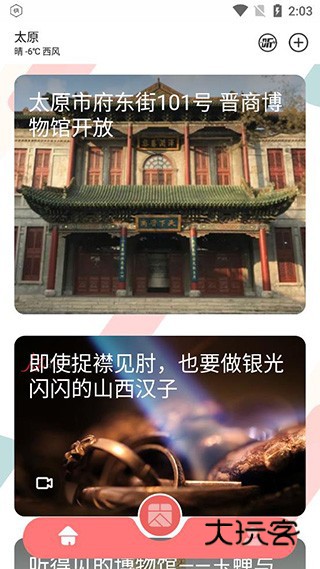 2、在第一个项目栏中,我们可以看到有关于太原的介绍,还有很多写的非常好看的文章,大家可以点进去观看。点击右上角的加号,或者是听,就可以通过扫描或定位的方式为大家介绍附近的景点。