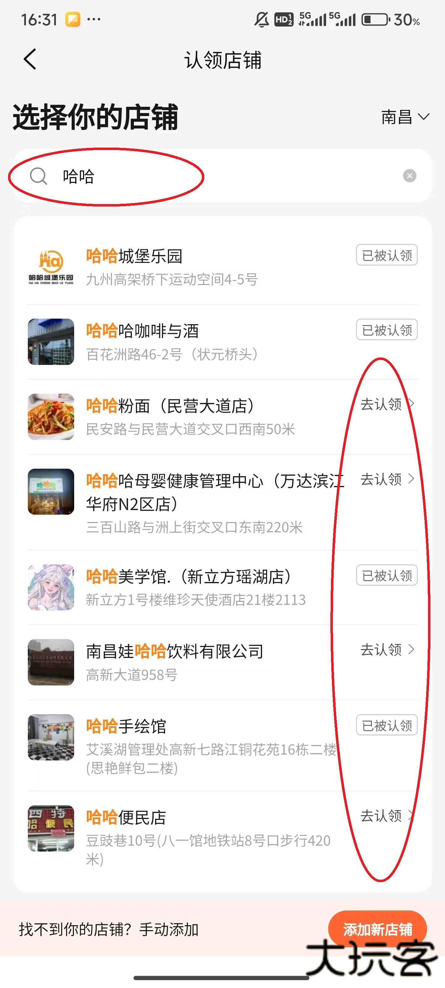 6、随后在屏幕上方搜索自己店铺的名称,随后点击“去认领”。