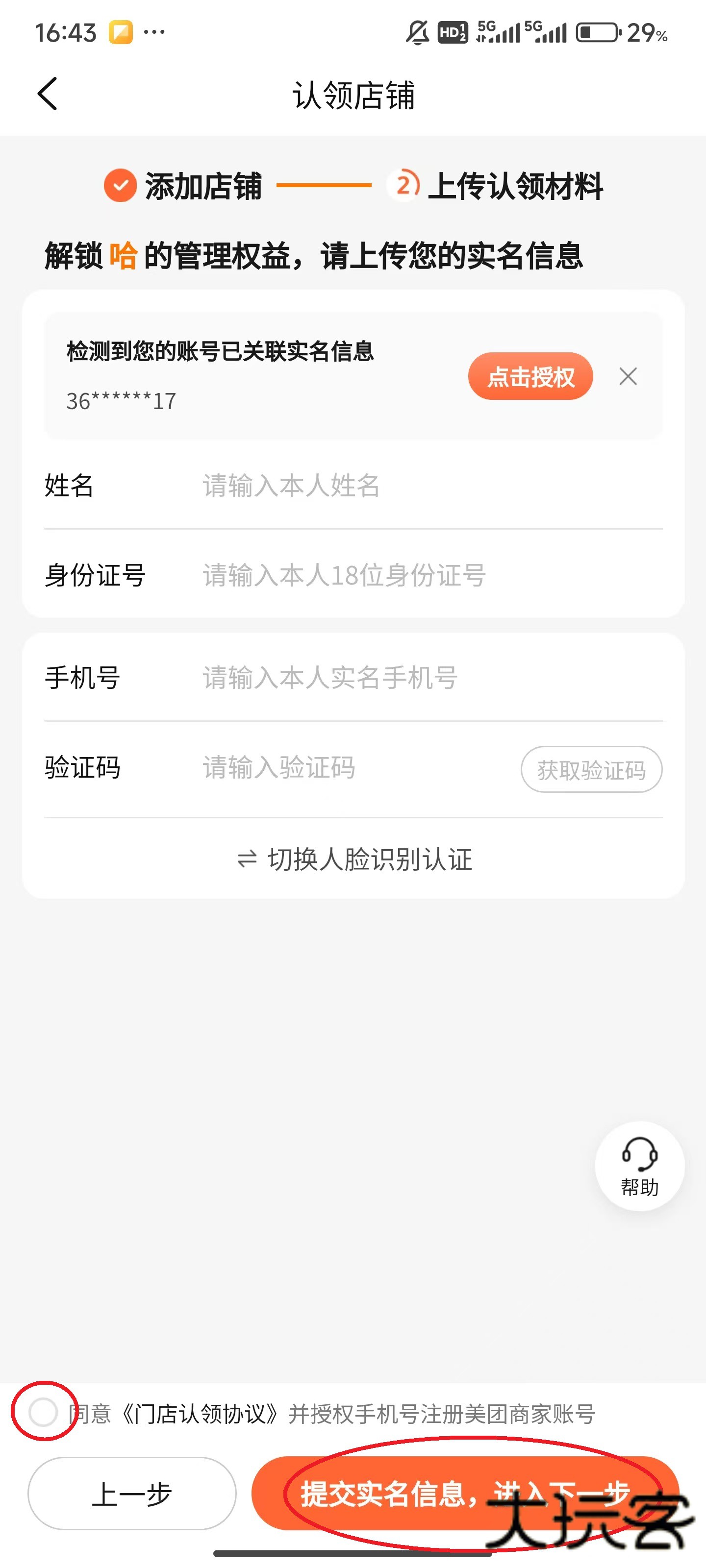 8、填写相关信息,然后点击勾选左下角的“同意...”,再点击“提交实名信息”,最后等待大众点评官方的审核。