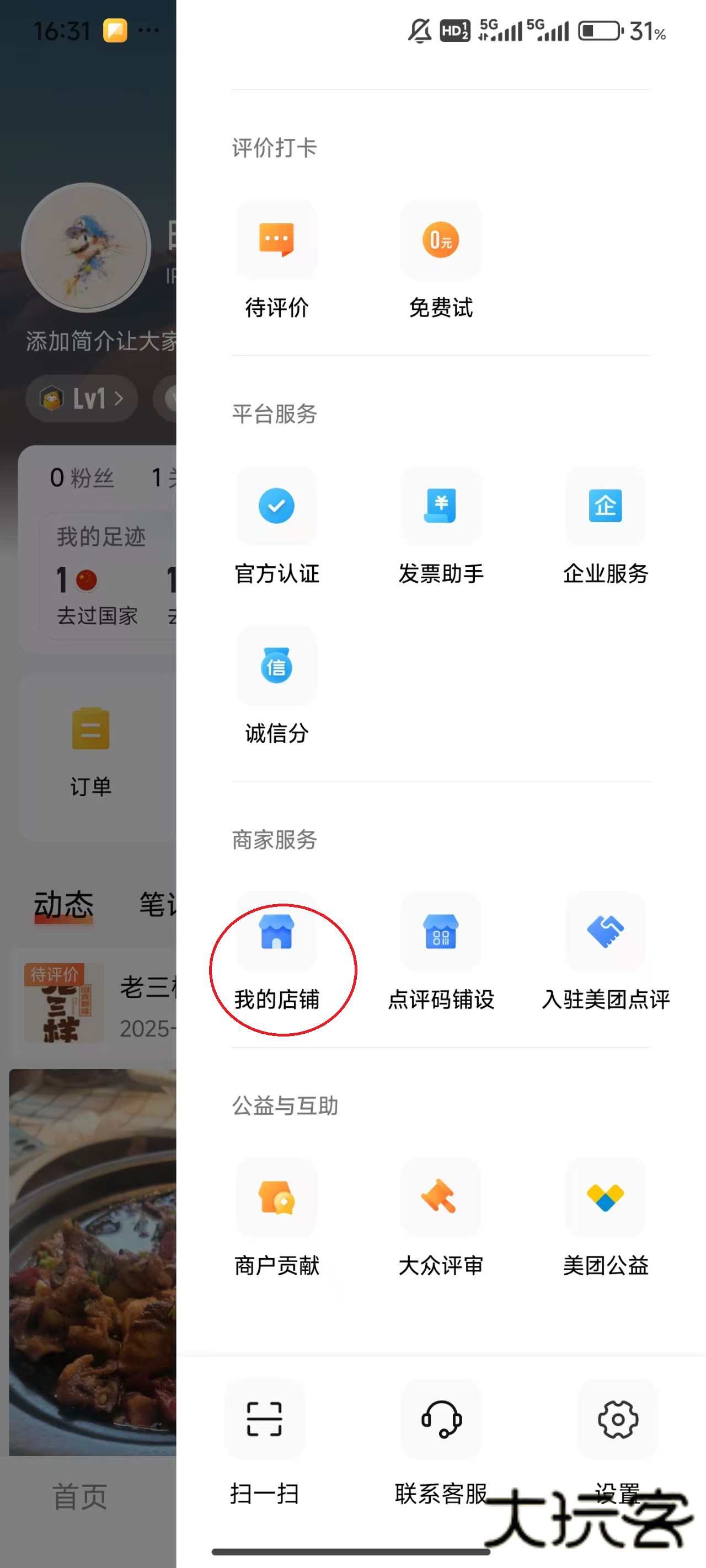 3、将页面向下滑动,直到看到“商家服务”板块。