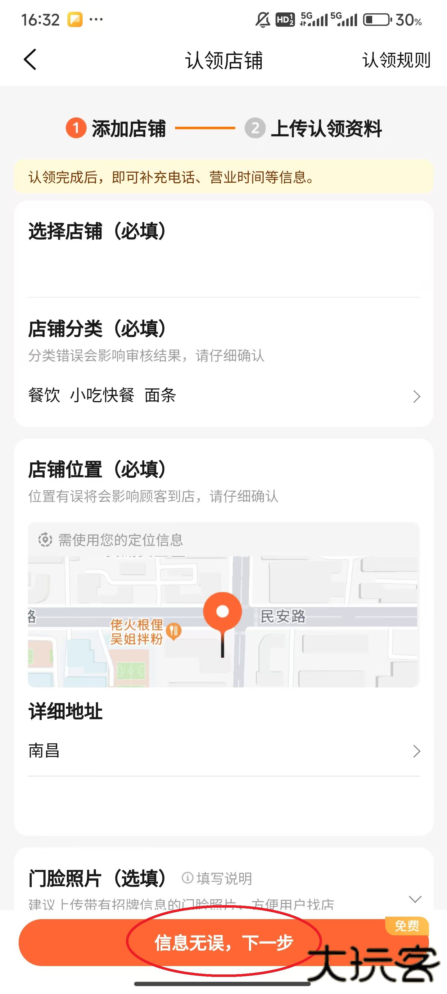 7、填写好相关信息后,点击屏幕最下方的“信息无误,下一步”。