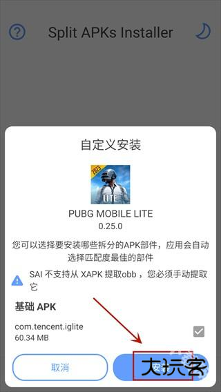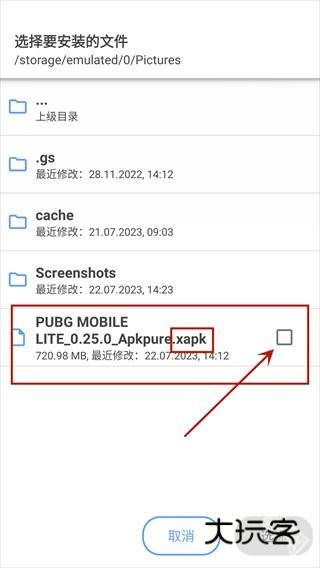 4、进入文件选择界面,搜索或者点击需要安装的文件,以pubg为例,可以看到这里有一个后缀为xapk的安装包