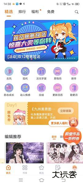 作为App的门面,首页使用十分简洁的布局为用户提供实用的多项功能,如编辑推荐、活动指南等,且新人用户注册还可领取殿堂作品一折秒杀的福利,什么值得推荐。