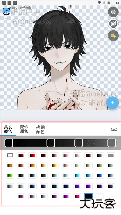 5、再次打开调色板,就会看到可以对头发、配饰、挑染进行调色了
