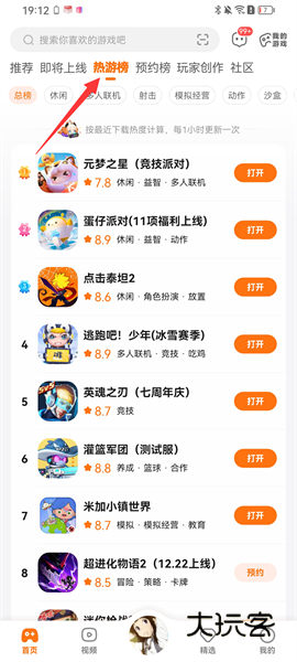 2、不知道玩什么游戏的用户可以直接点击热游榜,查看当前最热的游戏,任何一款都不会出错;