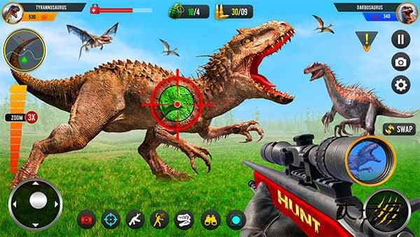 丛林侦察,精准定位多种恐龙,用突击步猎杀。把握时机,完成动物射击挑战,化身射手,沉浸狩猎。