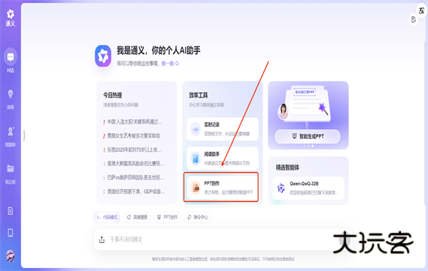 3.你也可以登录通义官方网址。https://tongyi.aliyun.com/qianwen/点击效率工具中的ppt创作。