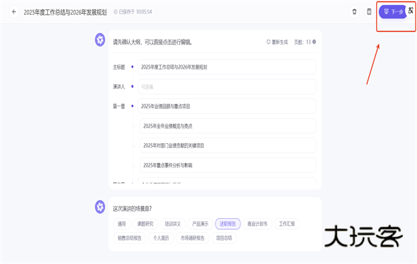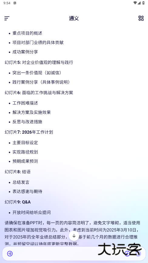 2.这时,通义就会提供一份ppt的大纲要点分布给大家参考。