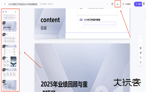 7.在通义生成的ppt内你可以直接编辑更改内容,编写完成后,点击右上角下载按钮。