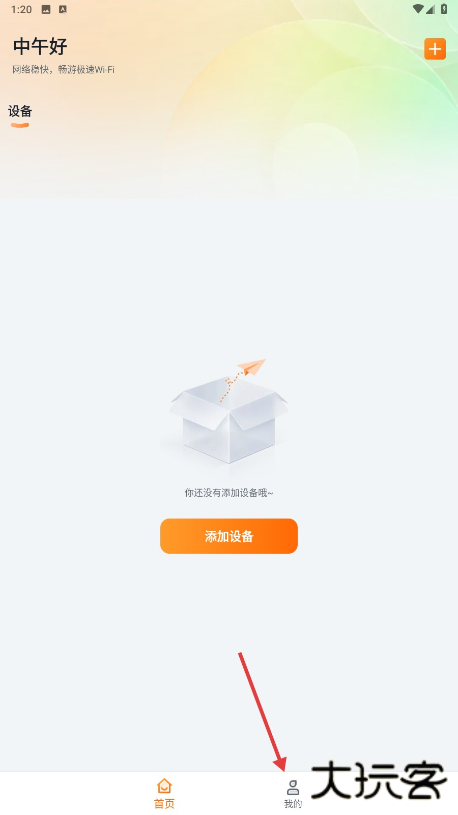1、我们打开软件,首页显示设备管理相关内容,如果要注销账号,就点击底部【我的】进入个人页面哦。