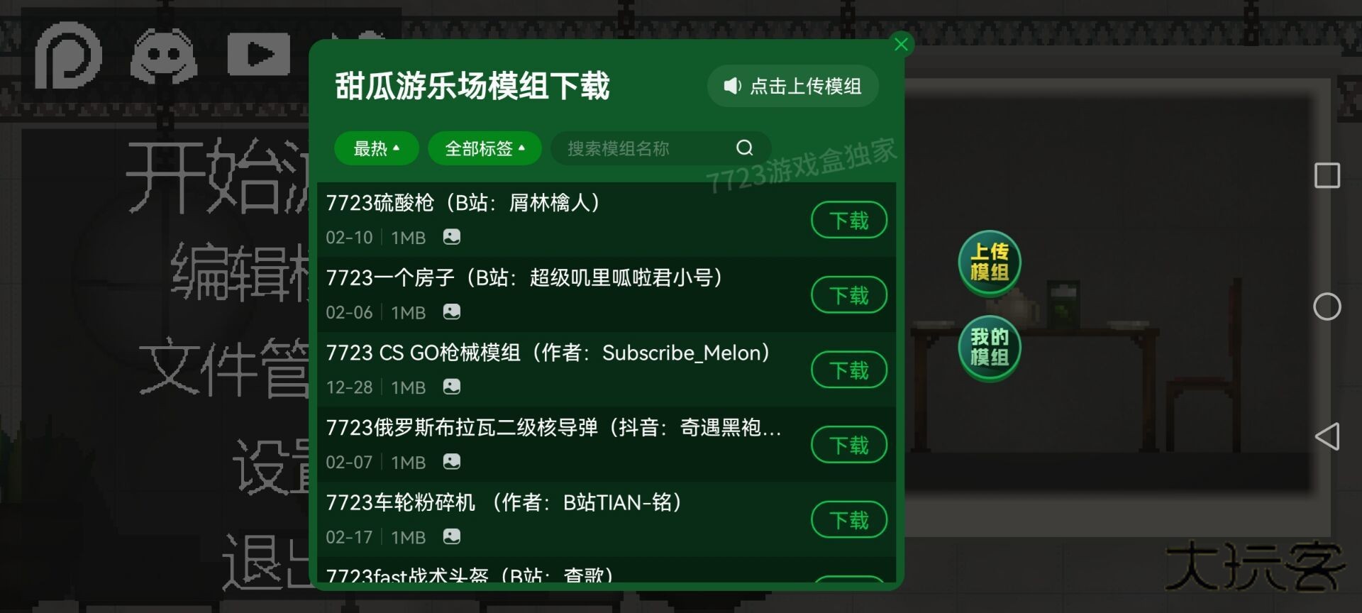 汉化+去广告+游戏内模组上传功能,自带模组