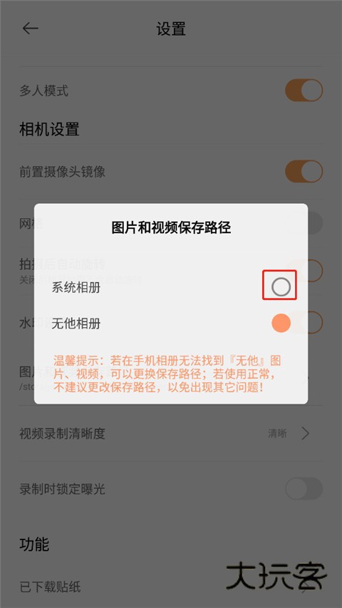 4、点击现在系统相册即可将照片保存到手机里,不过需要注意哦的是如果在手机相册里没找到无他照片的话,可以更换保存路径;如果使用真,不建议更改保存路径,以免出现其他问题。