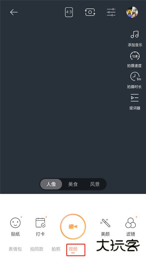 3、然后再右边的添加音乐、拍摄时长、拍摄速度、提词器中,点击拍摄时长,里面唯一用户提供了10秒、15秒、1分钟、5分钟、30分钟的视频时长选项;