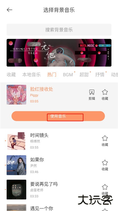 4、如果想要在视频里面加音乐的话,点击右边添加音乐功能;