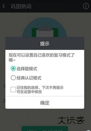 5、在背了一些词汇之后,主页面可以选择巩固熟词。有选择题和经典记忆模式可以选择。