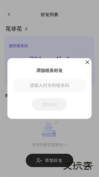 4、可以看到自己的纸条码,点击“分享邀请”,可以发送到第三方平台给好友。也可以点击复制,把纸条码发给好友。还可以点击底部的“添加好友”,进入。