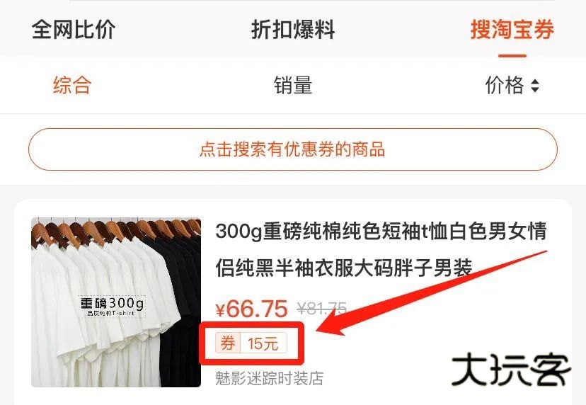 慢慢除了能查询历史价格外,它还能检索出商品的优惠信息。就拿这件T恤来说,点击“搜优惠券”就能折上折!