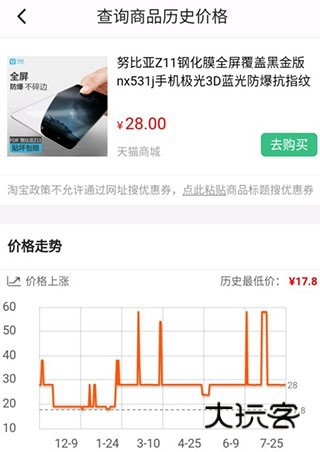 复制商品链接,查一查该商品两年内的历史价格走势,领取店铺内部优惠券,识破商家虚假促销,掌控商品价格走势。