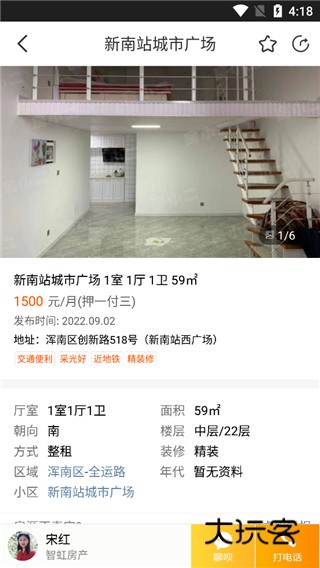4、随意点击其中的住房,它会为用户带来最基本的租房条件以及房子类型图,如果有意向的话,用户可想房东联系。