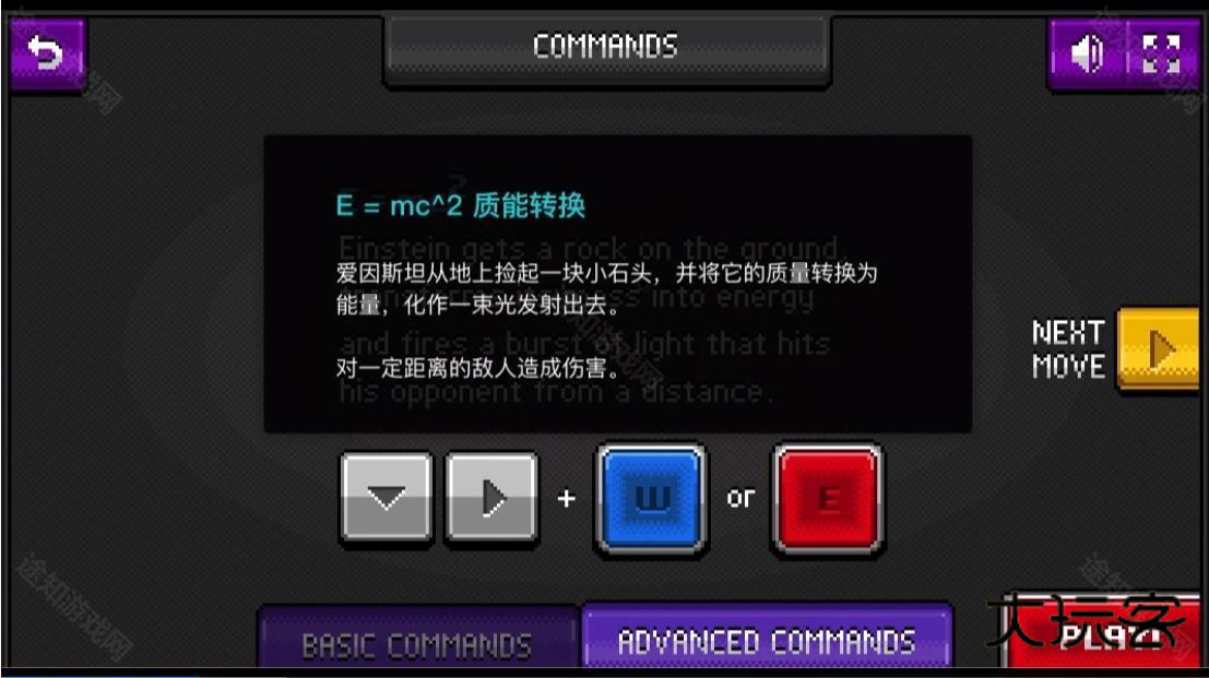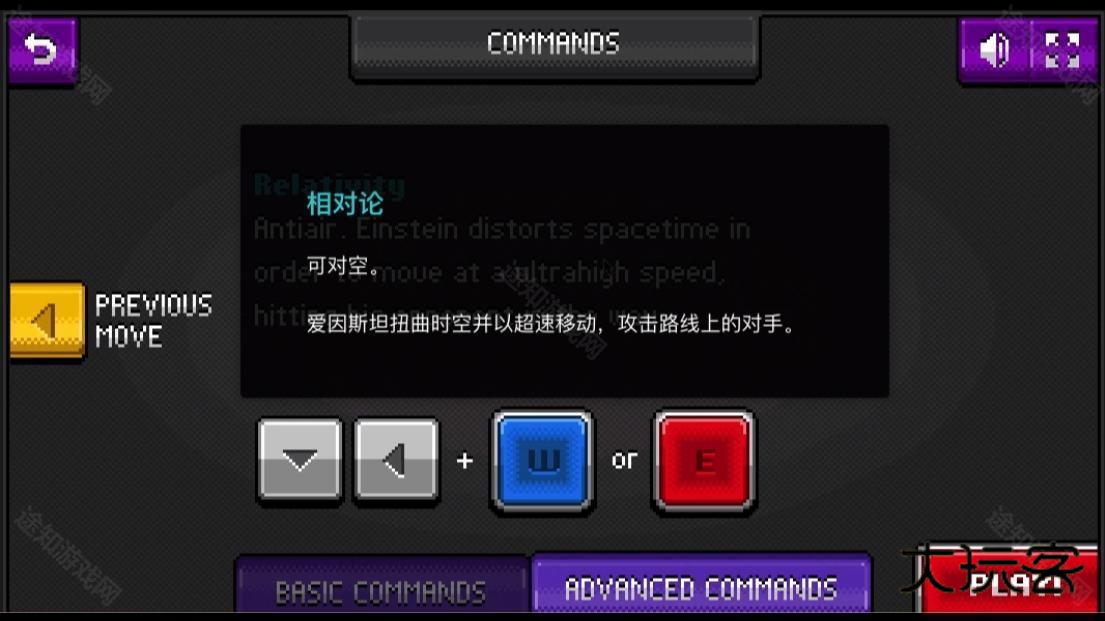 3、这里可以看到通过按住向下键和向右键加上W或者E,可以实现特殊技能质能转换技能的发动;