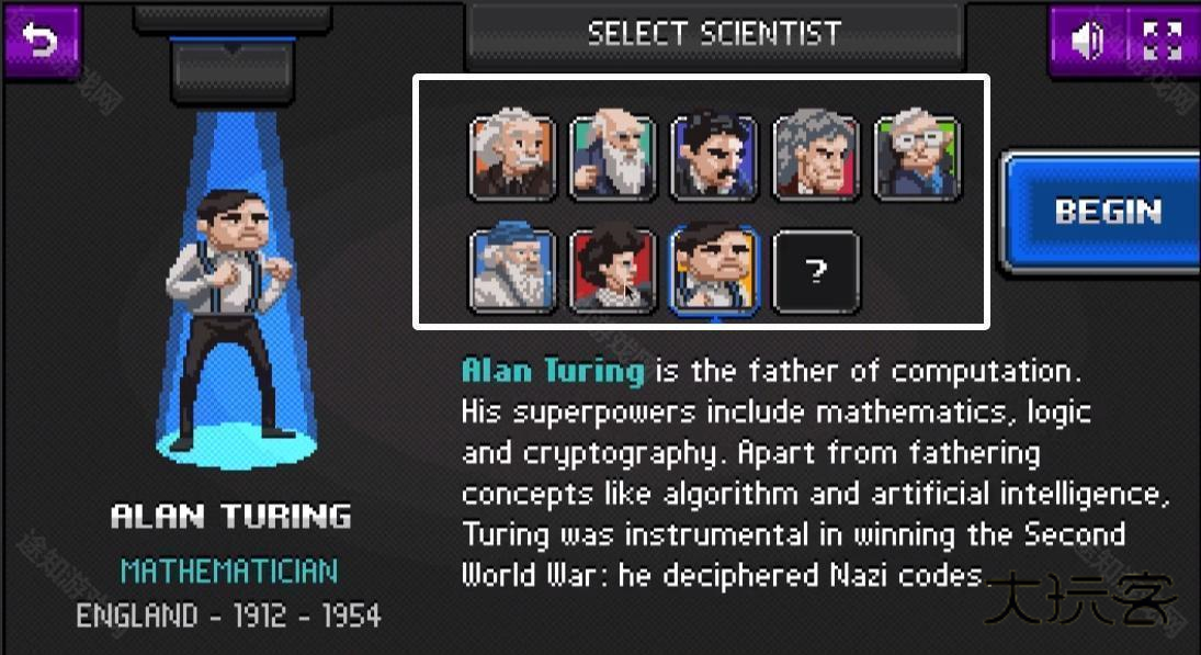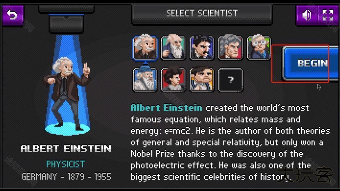 1、在游戏中可以看到有超多的角色可以选择,各种角色都有属于他们的成就介绍,点击这里选中爱因斯坦进行挑战;