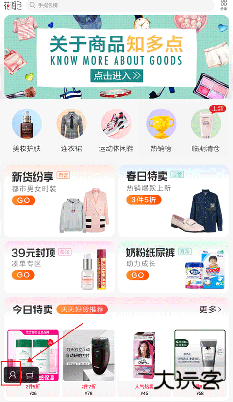 3、覆盖服装、美妆、居家等全品类商品。韩束,森马,阿依莲等500+品牌入驻,100%正品保障。