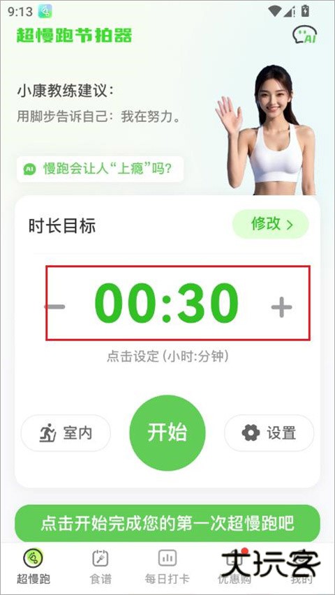 6、全都设置好后,点击开始完成您的第一次超慢跑吧