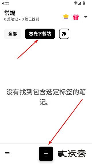 3、之后就能切换到该标签下,点击“+”新建笔记了