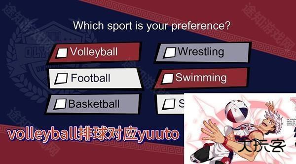 1、Volleyba指的是排球,对应的角色是Yuuto。