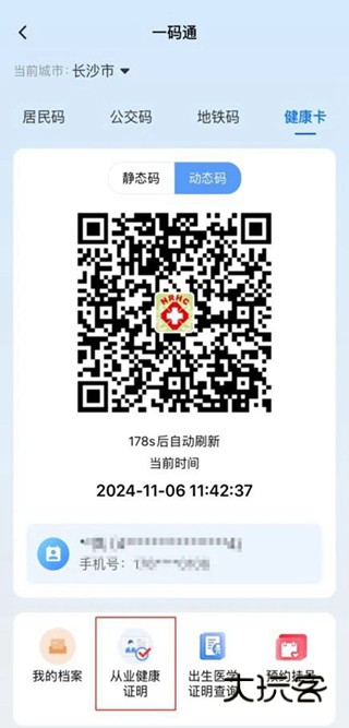 通过“湘易办”首页“一码通”入口进入“健康卡”页面,进入“从业健康证明”服务。餐饮从业人员等需要从业健康证明的人员,打开“湘易办”即可轻松获得随身专属的“电子健康身份证”,让你工作更安心!
