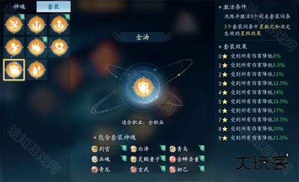 3、金汤,一块全职业的通用神魂,所有职业都适用金汤,作为受到伤害降低%的神魂,这个就不用多说了吧,每个职业都有他的影子,作为挨打辟邪神魂之一,懂都都懂,每个职业必不可缺的一块神魂。