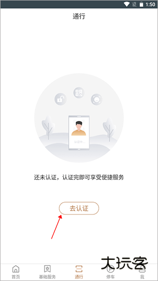 1、打开软件注册登录后,在通行界面,点击“去认证”