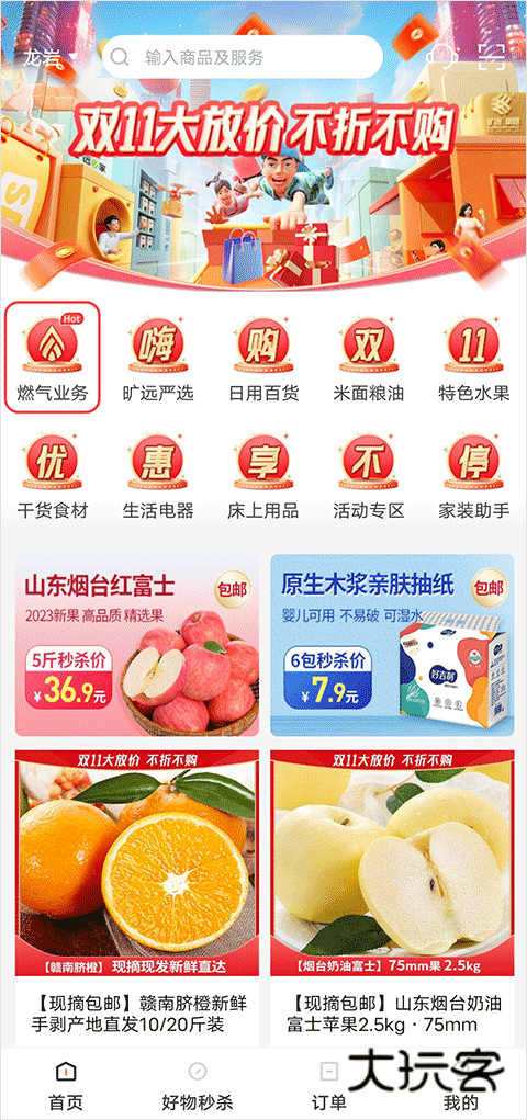 涵盖燃气充值、美食团购、亲子出行、生活超市等。
