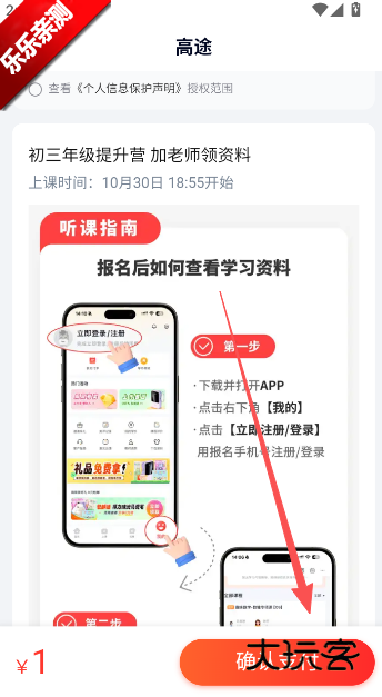 7、仔细查看课程学习方法以及领课程的方式,了解完毕以后点击确认支付。