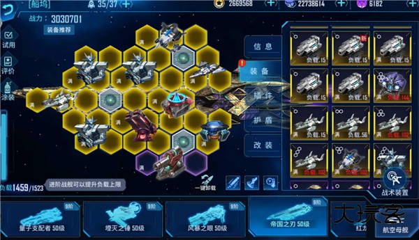 2、首先为战争,战争系统是指特定类型装置,特定属性、加强舰队数量、特定类型舰船特定属性加强、攻防一体的科技模块。通过进行该线程的培养,可以使得玩家的舰队数量、种类、攻击性能、防御等多个模块获得高额加成,是作战不可或缺的搭档。 其次为工业系统,主要包含挖矿、精炼、生产、线程管理数量、图纸解锁,偏向于物资流派的养成,可以给玩家提供高额的资源收益。最后为辅助以及经济,顾名思义作为游戏中的增益类系统,十分关键。