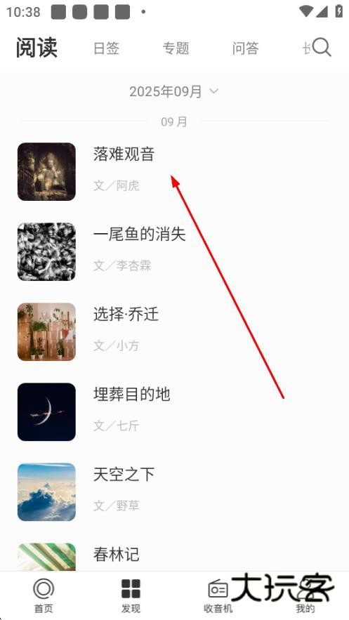 2、在发现页面的阅读分类下,选择一篇文章,点击进入文章页面。