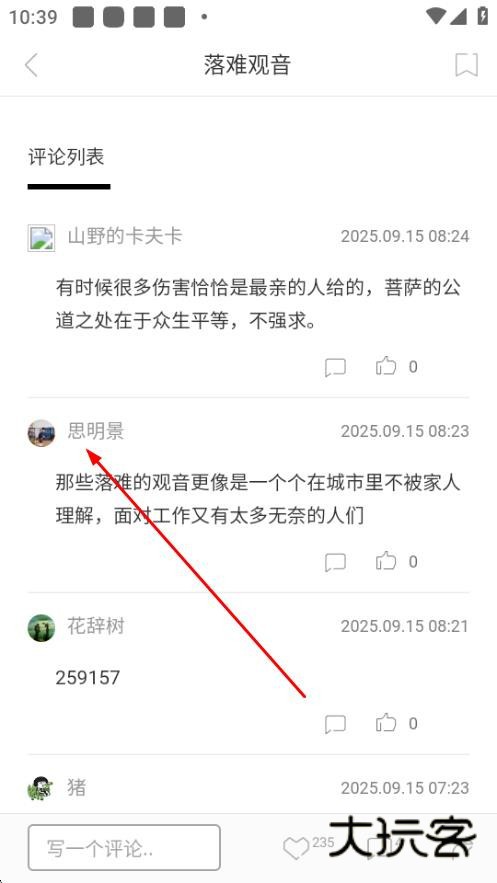 3、在文章的评论列表中,找到想查看主页的用户,点击该用户的头像。