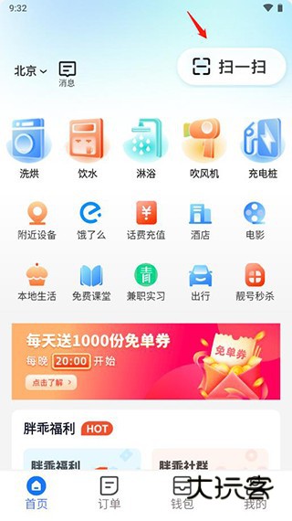 3、找到该设备之后就能点击右上角的扫一扫,对准设备上的二维码,扫码启动后就能使用该设备。