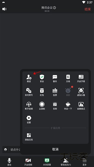 5、在展开的上拉菜单中,点击邀请选项,然后点击展开邀请界面。