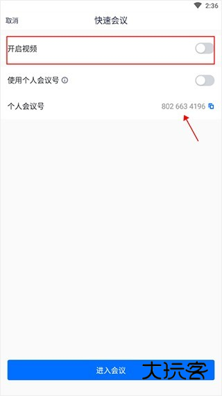 3、设置好参数后,点击界面下方的进入会议选项,创建一个会议。